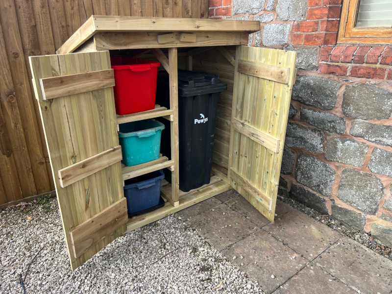 This one is suitable for 3 recycling boxes and 1 x 240ltr wheelie bin (not included) but can be made to order in various configurations.